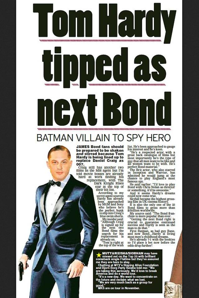 В ТСН только что озвучили новость про нового Харди-Бонда (важнее ж нет никаких новостей)