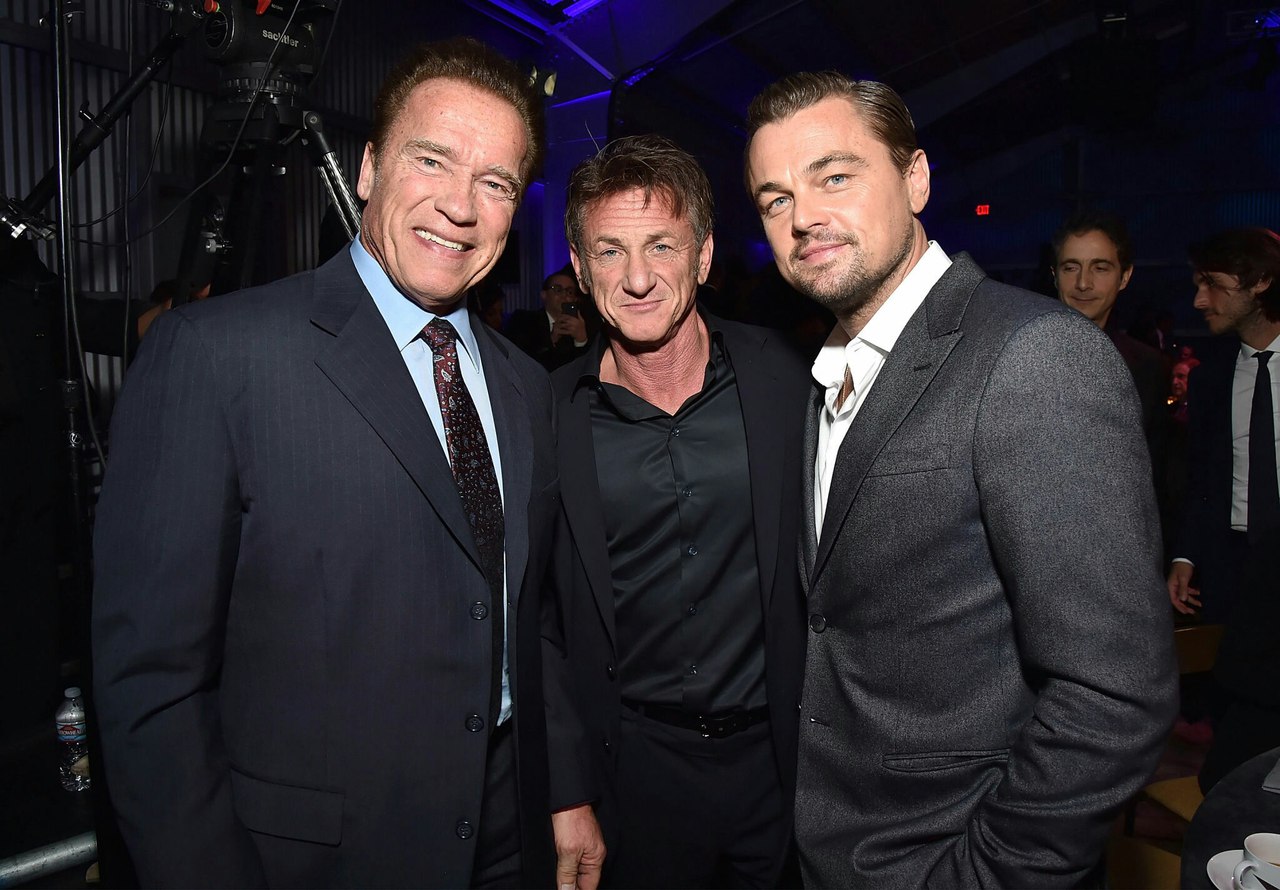Лео в компании Шона Пенна и Арнольда Шварцнегера