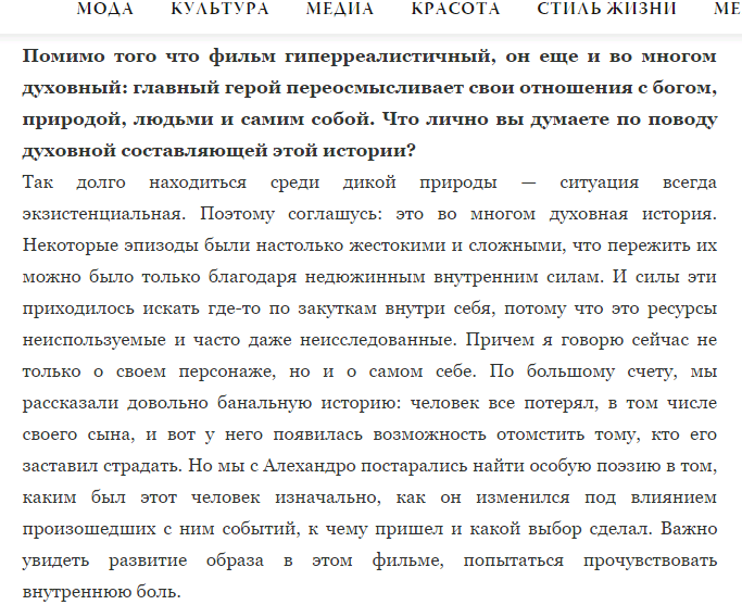Фильм очень хорошо снят, смотрела на одном дыхании! Лео играл невероятно правдоподобно, прям жил в кадре! Никто бы так не сыграл, только он так может!