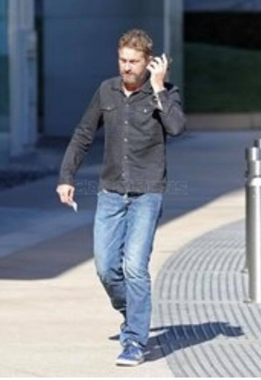 West Hollywood, CA - * EXCLUSIVE * - Джерард Батлер берёт кофе, чтобы согреться в холодную погоду. Джерард выглядит случайным для прогулки в рубашке с длинными рукавами, в