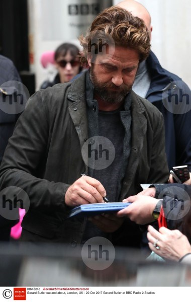 The 47-year-old actor was spotted heading out of the BBC studios and signing some autographs on Friday (October 20) in London, England.
