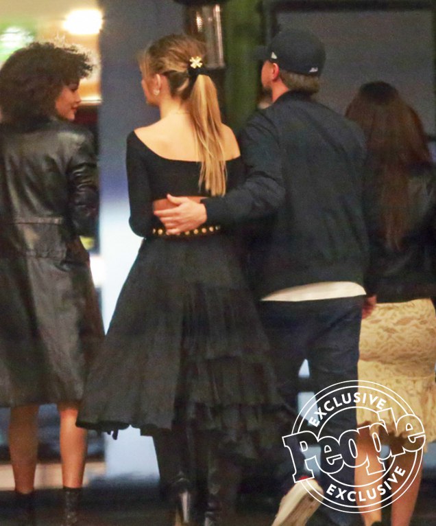 Леонардо пришел на вечеринку вместе с Камилой Морроне (блондинкой в черном платье) ее подругой Изабеллой и ее матерью Люсилой Сола (брюнетка в белом платье и черной куртке) и другом Лео - Лукасом Хаасом.