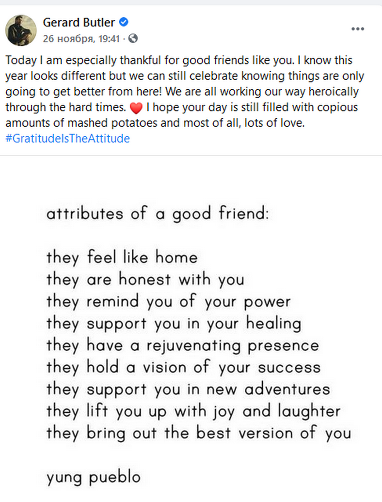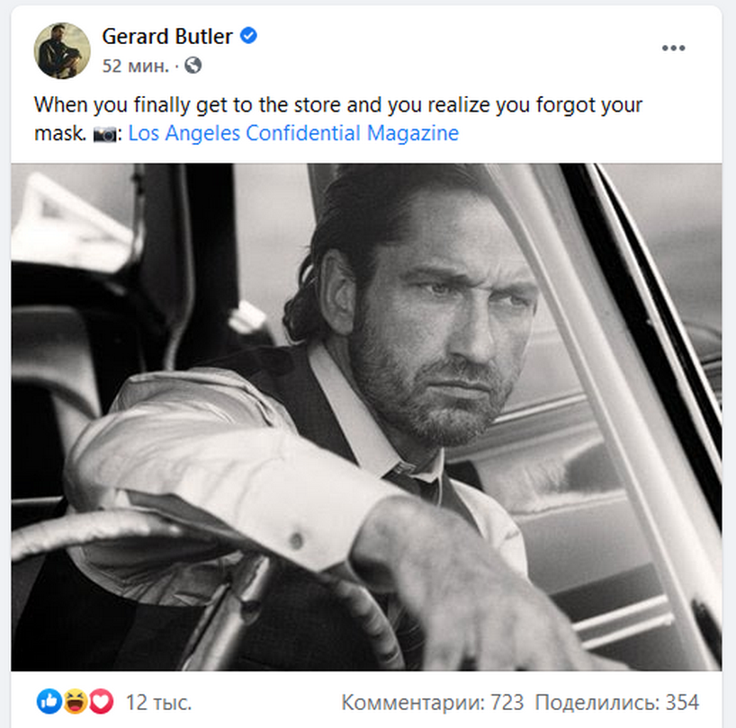 Джерард Батлер в соцсетях