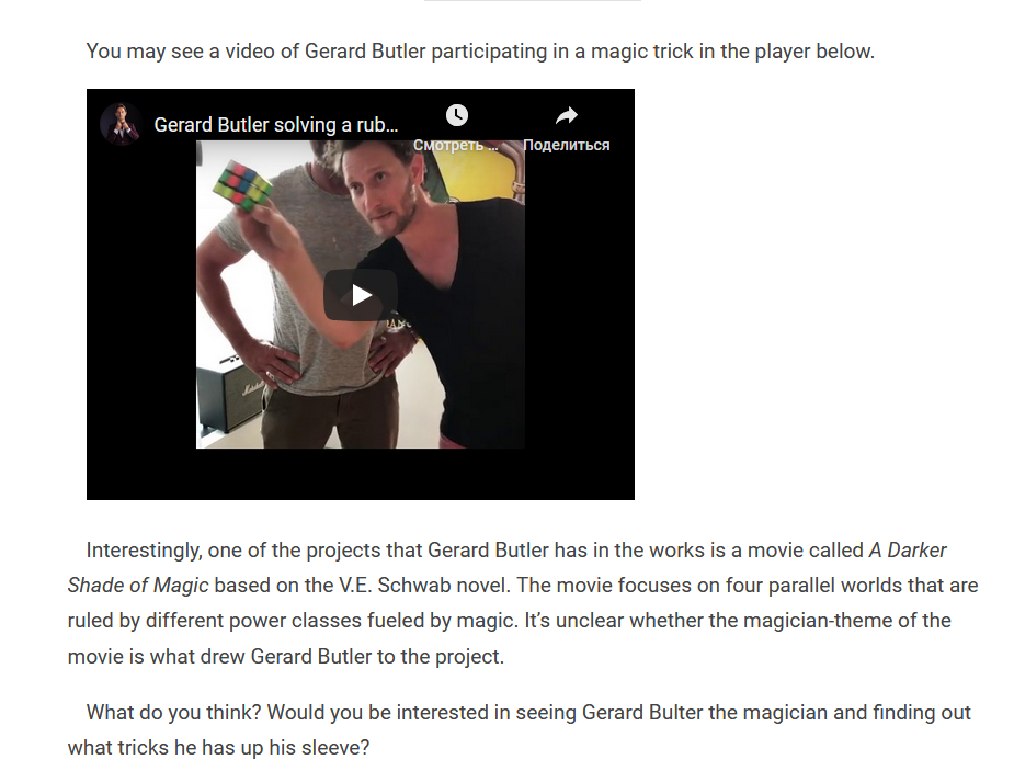 Вы можете увидеть видео Джерарда Батлера, участвующего в магическом трюке в плеере ниже.