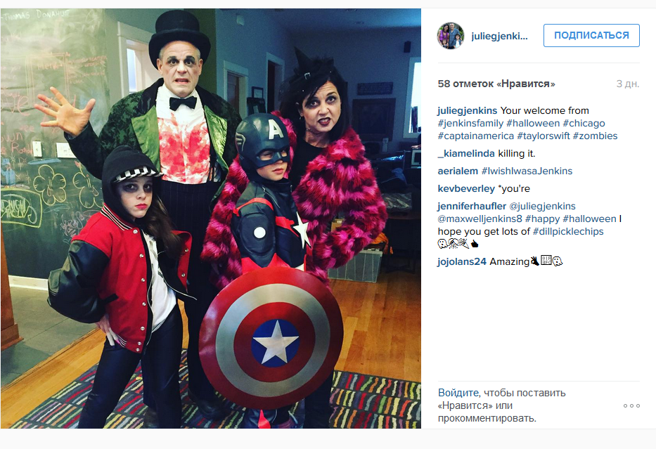 Я так понимаю, Хэллоуин в Торонто всё-таки отмечали. :) Мальчик Maxwell Jenkins оделся, как Джеррик в прошлом году в костюм Капитана Америки. :)