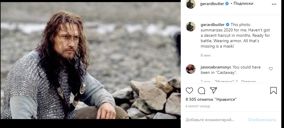 Джерард Батлер в соцсетях