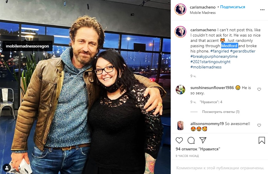 Несколько последних по времени фотографий участников соц.сетей с Джерардом Батлером