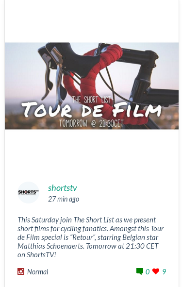 как я поняла, The Short List анонсирует короткометражку для вело-фанатов с Шонартсом “Retour” в эту субботу в 21.30