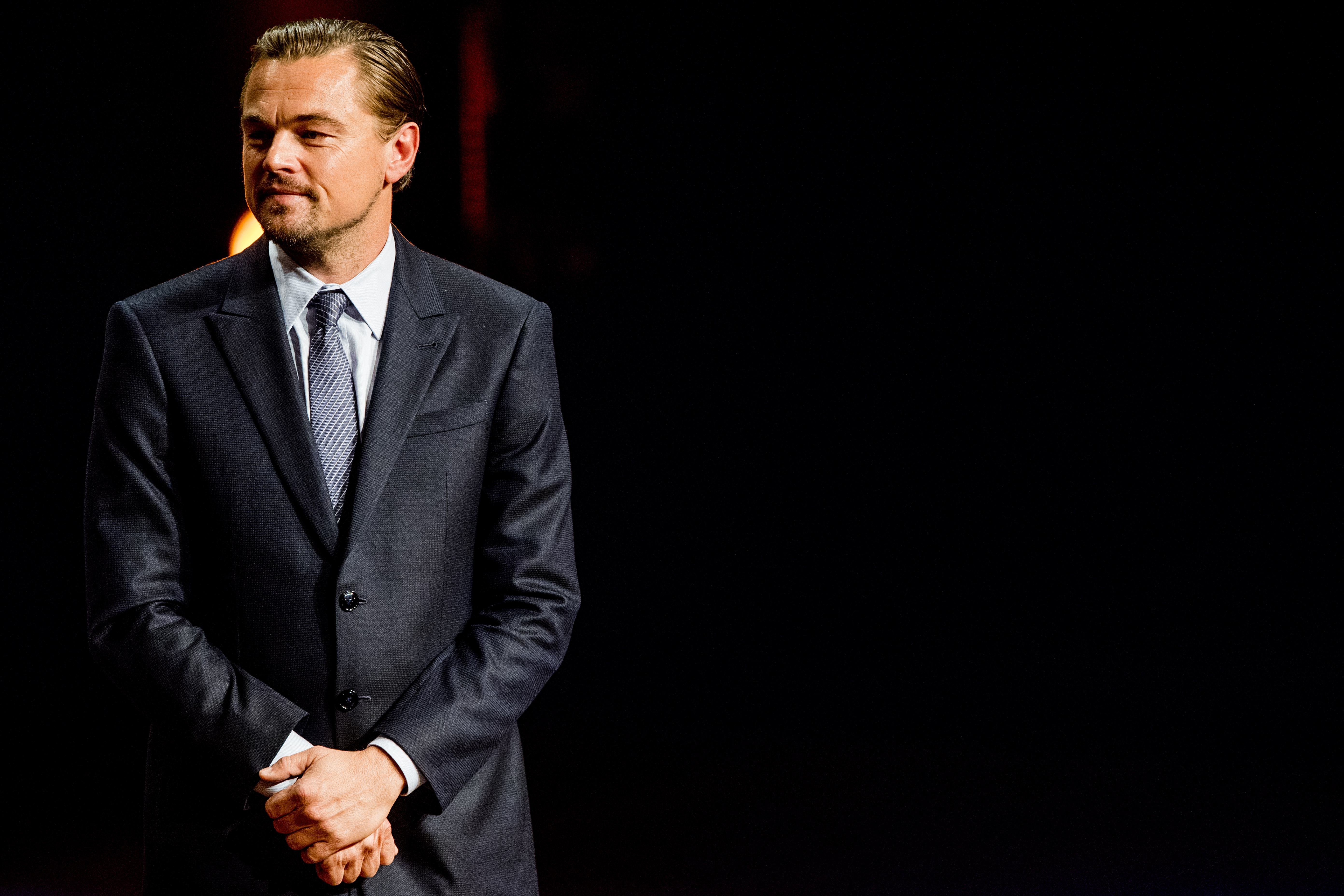 В позе Наполеона сверху у Лео правая рука.