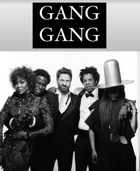 shares a photo with Jay, @NaomiCampbell, @GerardButler and @fatbellybella