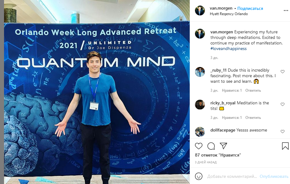 Там в Орландо, в этом отеле проходит какая-то конференция или тренинг по оздоровлению, изменению сознания, квановый разум и почее, прочее.