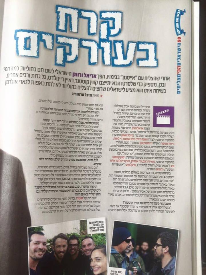 Они встретились, сделал документальный фильм, который был показан по израильскому ТВ. Они стали близкими друзьями. Suchard говорит, "Он замечательно. То, что я люблю о том, что Ариэль он профессионал, но имеет сумасшествие ребенок. Мы можем серьезно говорить о углами съемки, а затем мы делаем глупые шутки. Мы очень тесно связаны. We сделал некоторые сумасшедшие вещи вместе. мы должны сделать фильм о том, что пошел за кулисами. Он хороший друг. мне не нужно, чтобы увидеть его все время, но мы очень тесно связаны ".