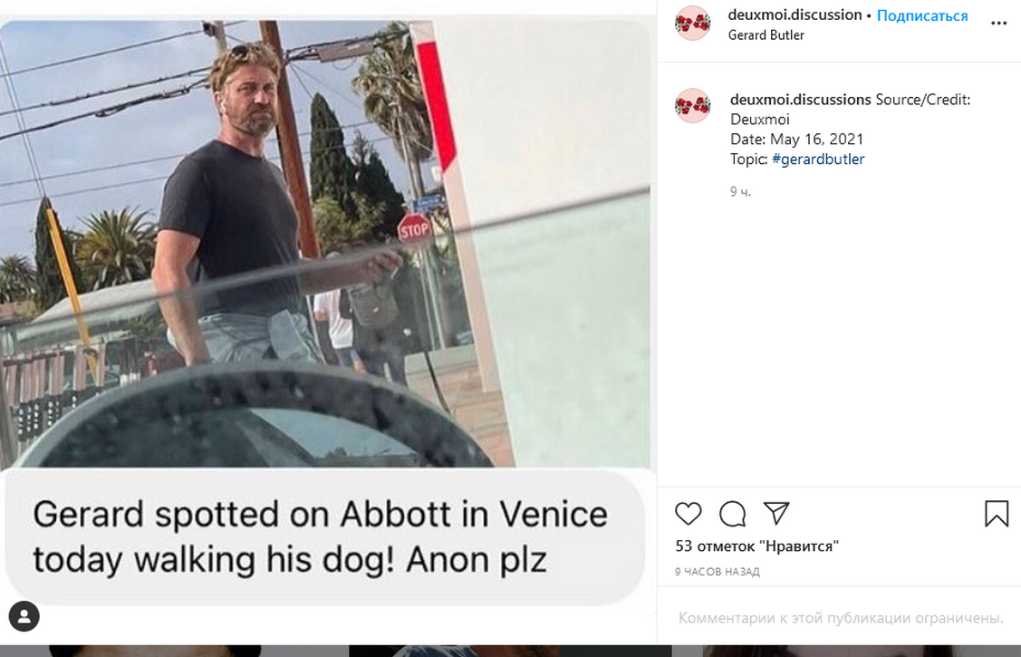 Джерард Батлер в соцсетях