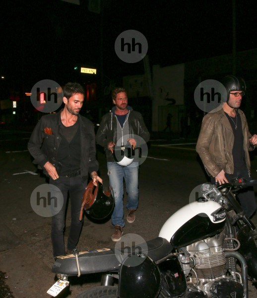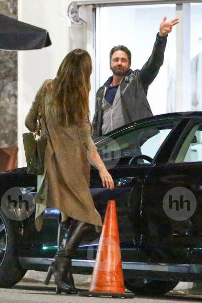 *Эксклюзив* Лос-Анджелес, Калифорния - Голливуд А-Листер Джерард Батлер и его сексуальная брюнетка Морган Браун забрали свой автомобиль с парковки после романтического ужина No Name в L.A. шотландский актер был рад видеть наши камеры и даже помахал рукой, прежде чем отправиться домой