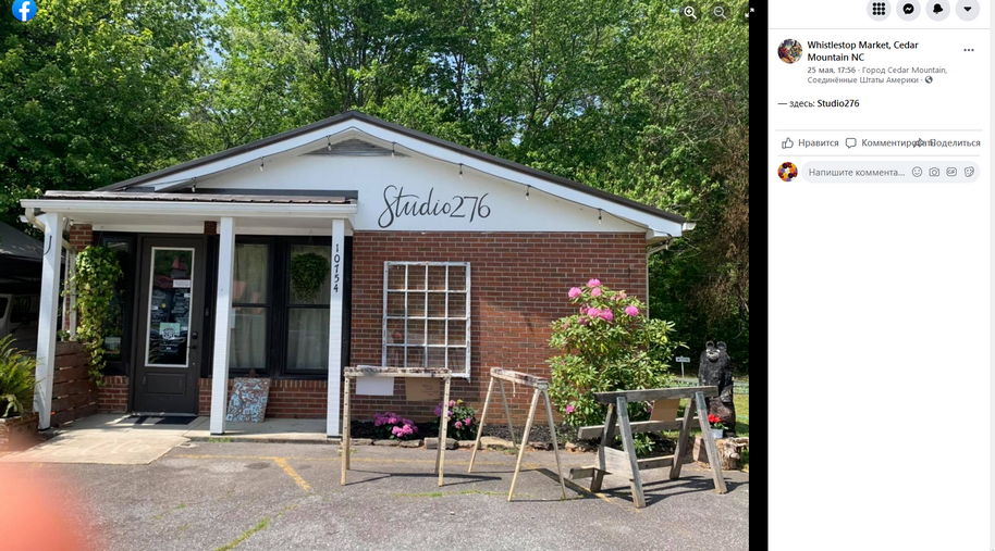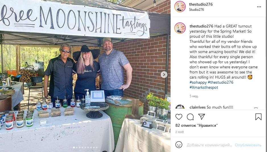 Фото из города Cedar Mountain в округе Трансильвания, штат Северная Каролина, США. Лес, природа, арт судия Studio276, выступления музыкантов, кофе, пончики и дегустация самогона в смешных баночках.