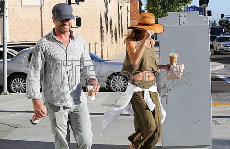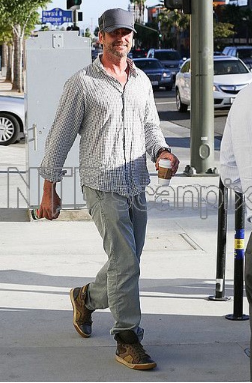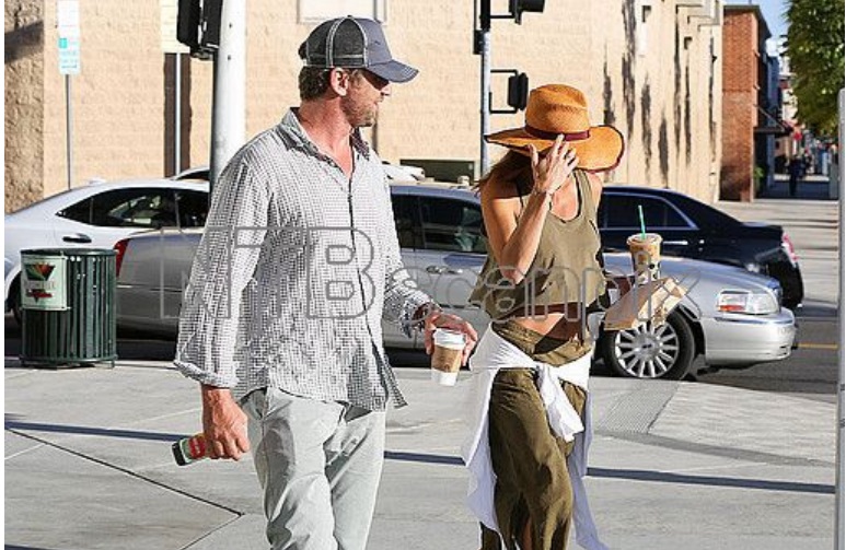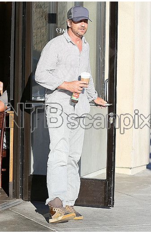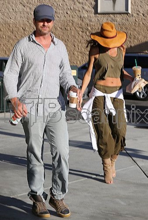 Gerard Butler and girlfriend Morgan Brown getting coffee in Los Angeles, CA. After coffee, the couple headed straight to a waiting car.