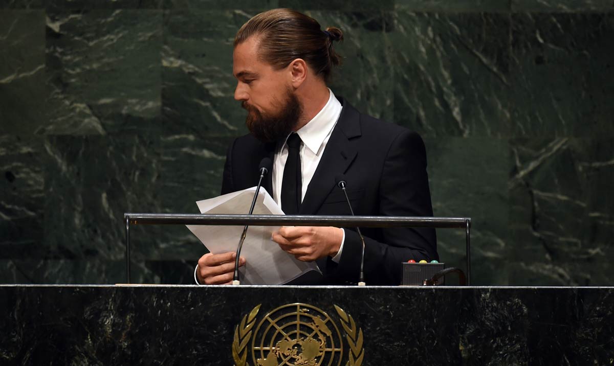 Эта "прическа" стала для Лео повседневной и даже парадной во время съемок в фильме "Выживший" (2015 год) в дополнение к ней была ещё и "хьюглассовская борода"