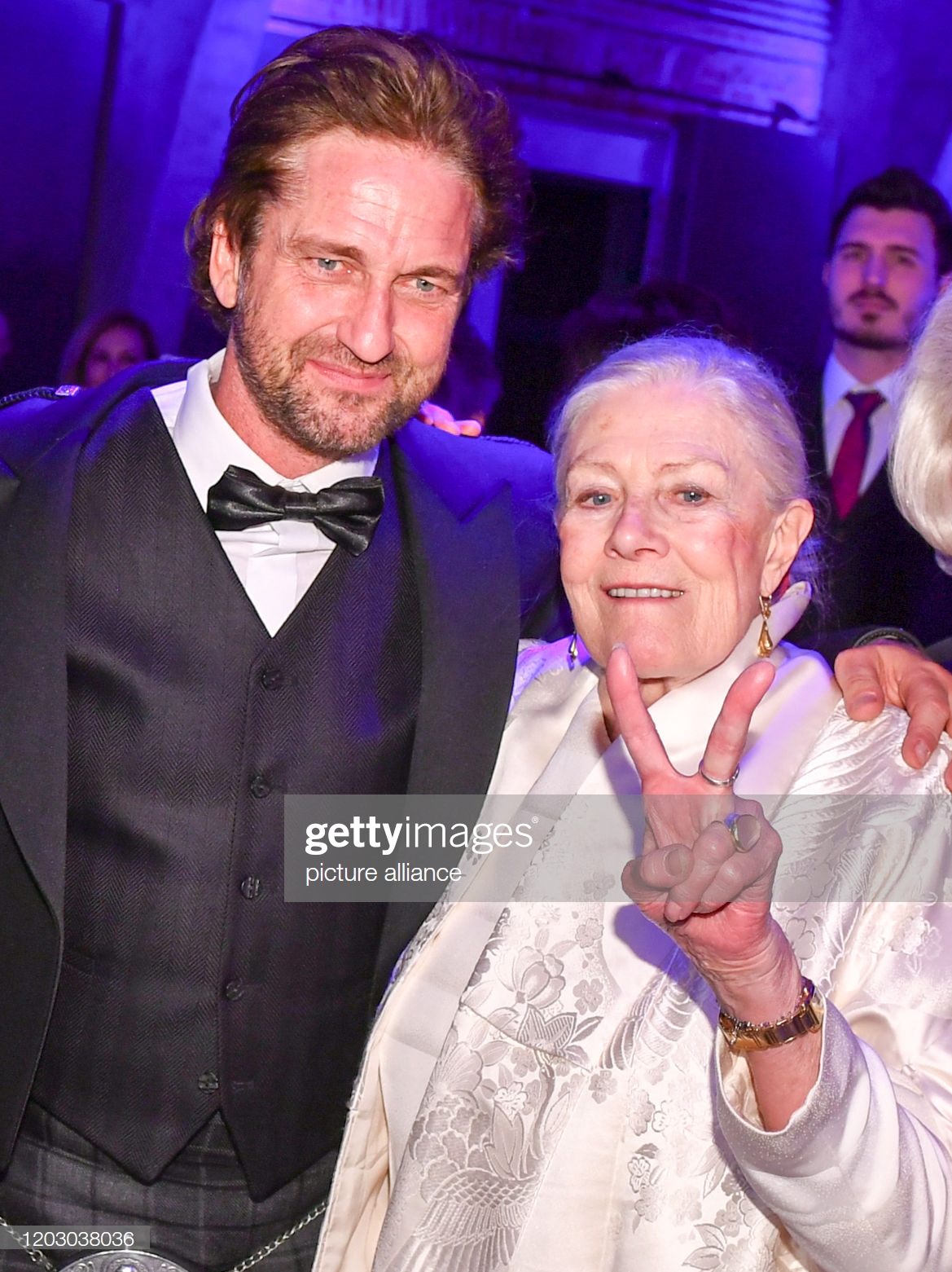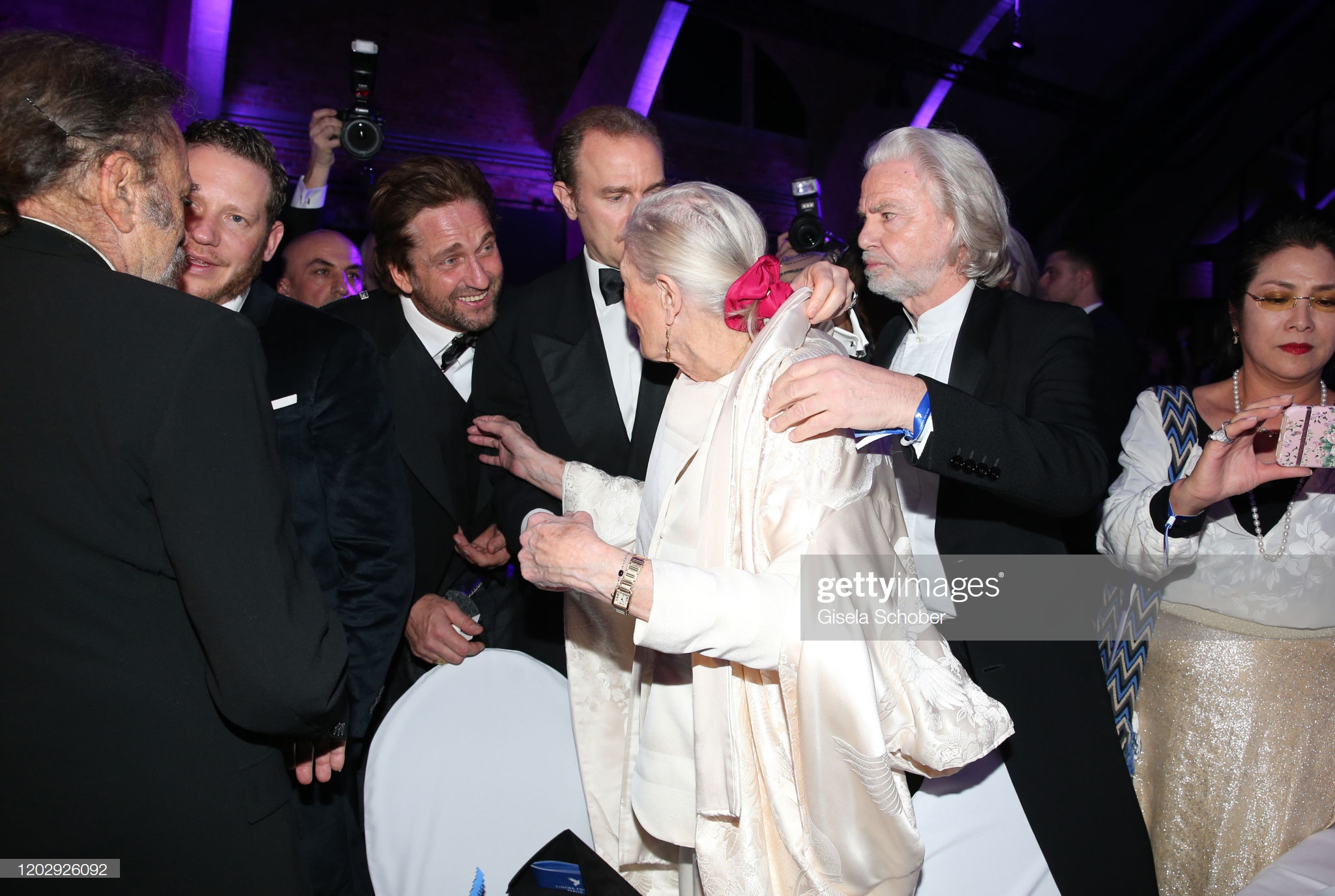 Джерард Батлер, Ванесса Редгрейв и Герман Бюльбекер во время гала-концерта Cinema For Peace в Westhafen Event & Convention