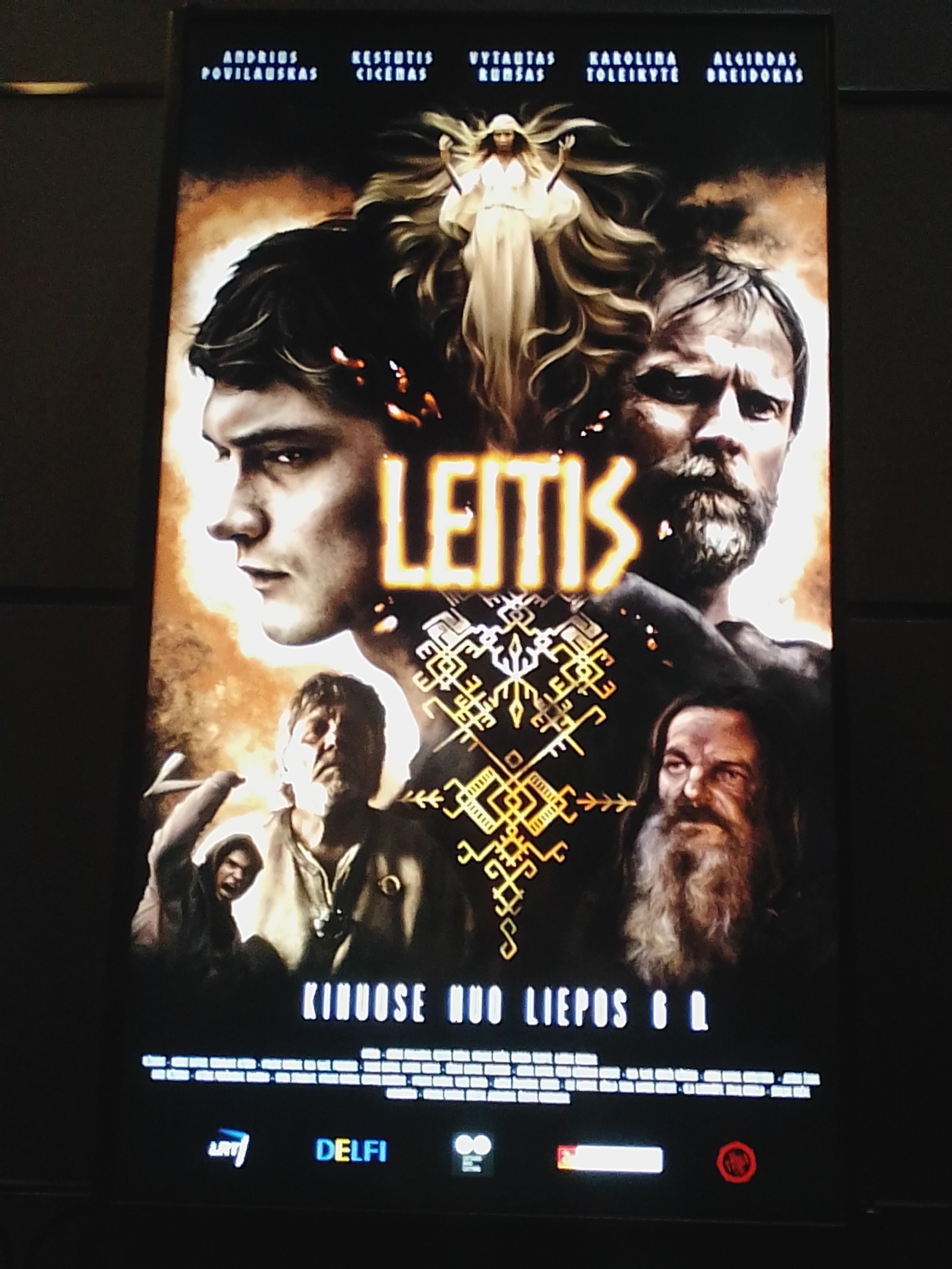Я недавно была на фильме LEITIS. Это Литовский исторический фильм действие которого происходит в 1247 году. В одну из деревней приезжает елитный воен - лейтис. Великий князь велел организовать експедицию на побережя. Вместе едет и сын председателя. Простая задача становится тяжелым испытанием. Мужчины на своей дороге встречают не только войнов противников, но и мифические существа.