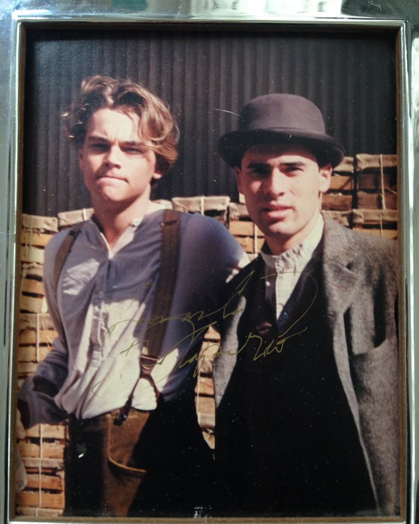 Ранее не опубликованная фотография Леонардо со съемок "Титаника" с коллегой из массовки, 1996/97 гг.
