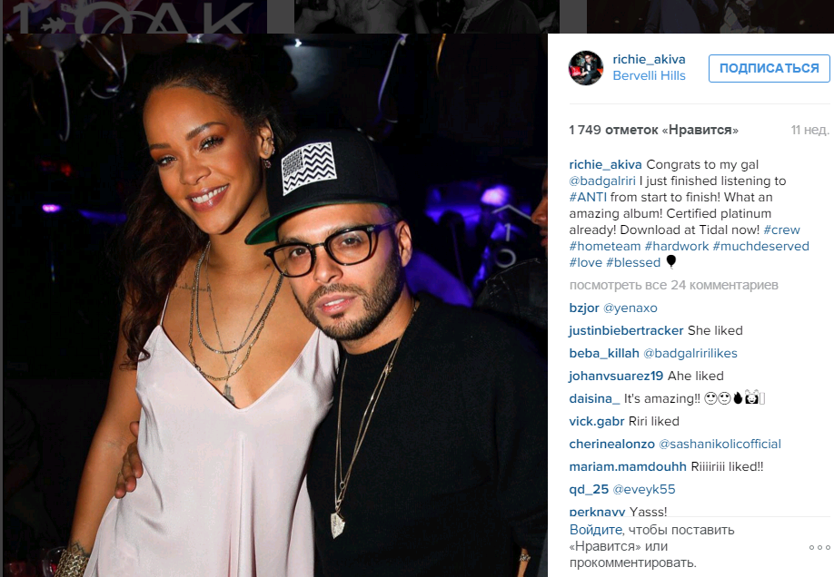 Вот одно из многочисленных фото друга Лео Ричи Акива с Рианной