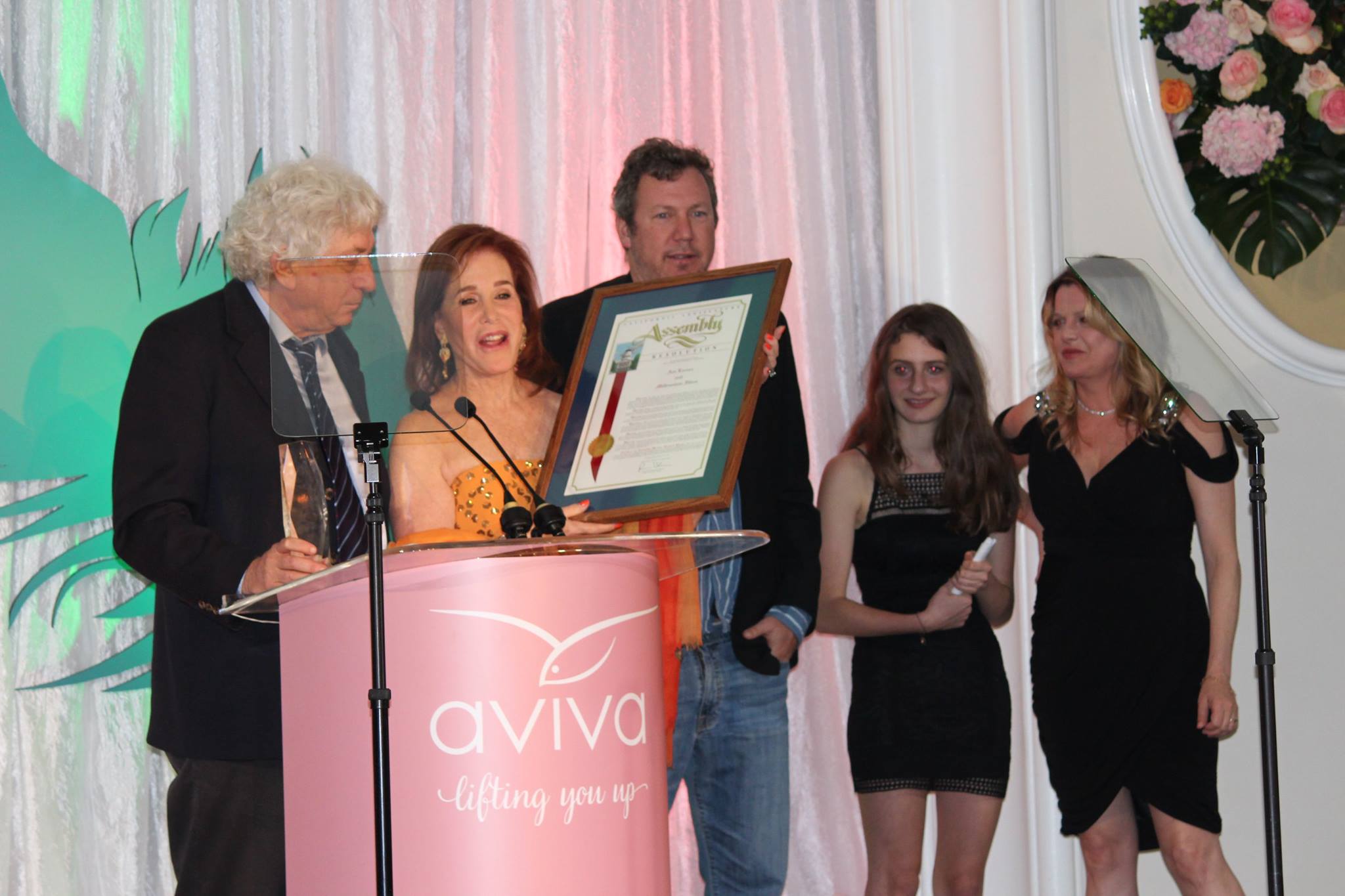 A very special moment at the AGala - Avi Lerner with his family, being presented with a State Assembly resolution for his incredible philanthropic work with Aviva