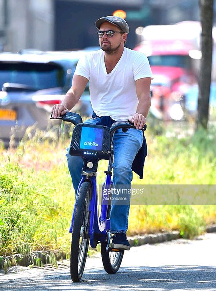 Лео на велосипедной прогулке с лучшим другом Скоттом Блумом, 26 мая, NY