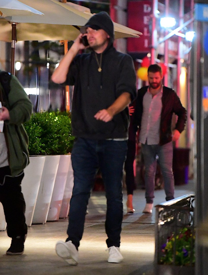 Вечер 14 мая, Леонардо выходит из ресторана пoсле ужина с друзьями (Нью-Йорк)