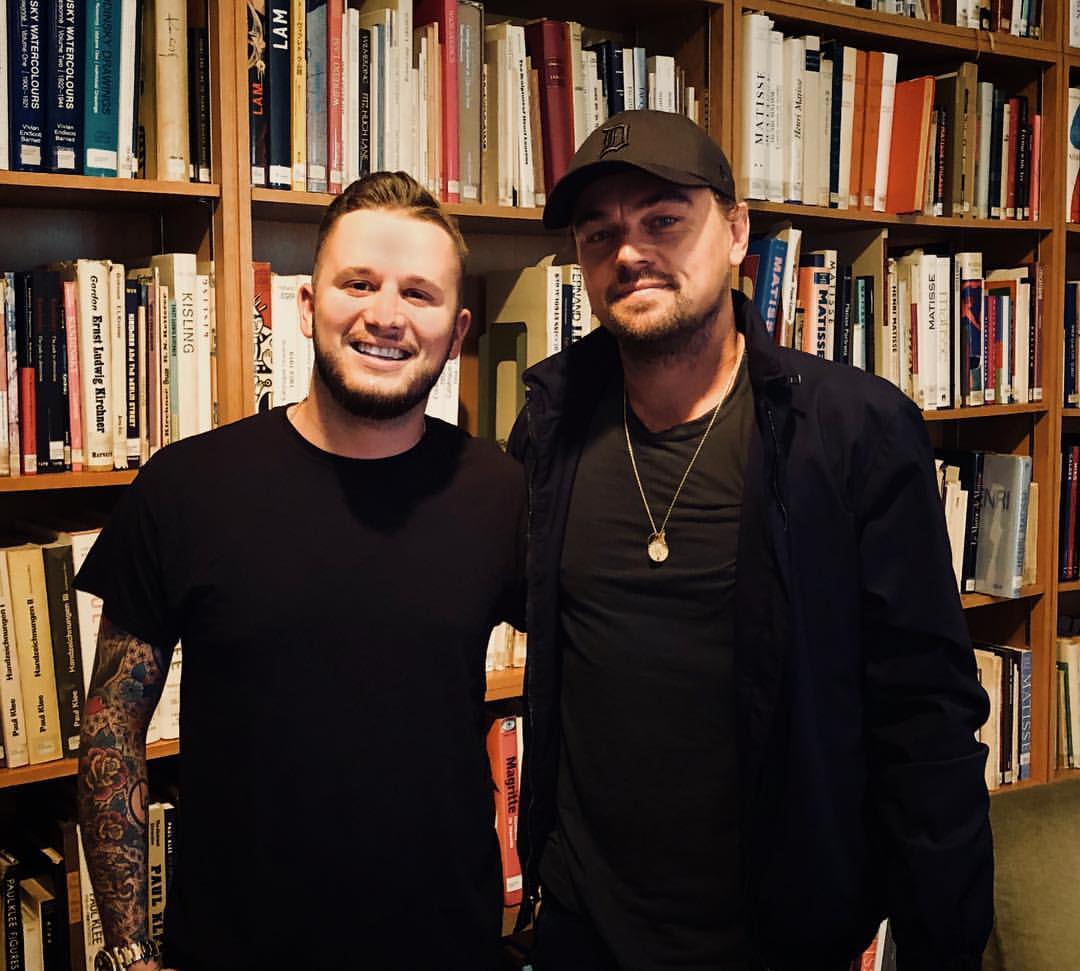 3 мая, Леонардо с фанатом в Лос-Анджелесе, вероятно в библиотеке)