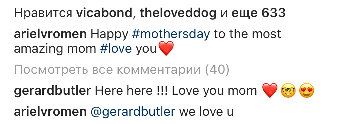 Тут Джерри тоже отметился комментарием к этой фотографии Ариэля с мамой
