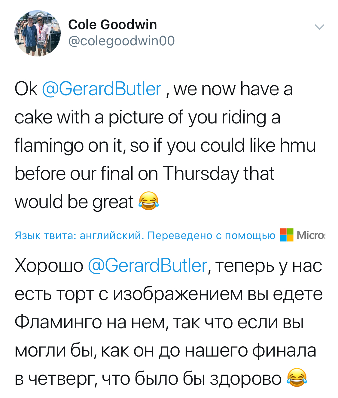 ДБ: О, я не самый лучший спец по отношению имен животных, но в тот день когда ее нашли, наш ассистент режиссера начал обращаться к ней с этим именем Шушка. Не знал, что значит это имя, но подумал, если Шушка, то пусть будет Шушка. Она была самим очарованием. Не знаю значение этого имени, мне дали 25 значений о нем — перчик, сучка, душка. В Америке нету такого имени и все находят это имя очаровательным, но мой массажист- русский по происхождению, и он мне сказал, что ее имя означает «маленькая сучка». Впрочем, не знаю, но ей подходит это имя, не могу себе представить ее с другим именем.