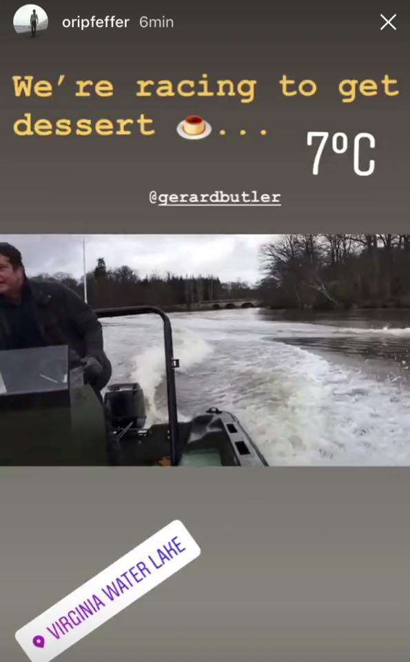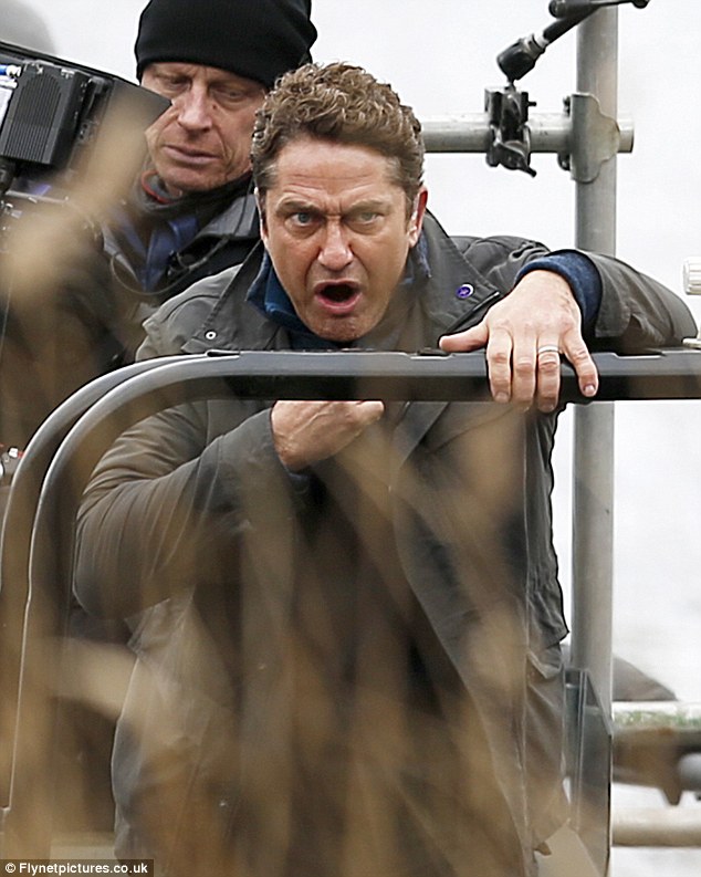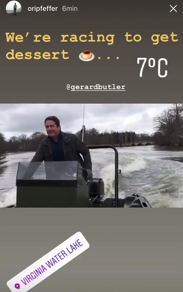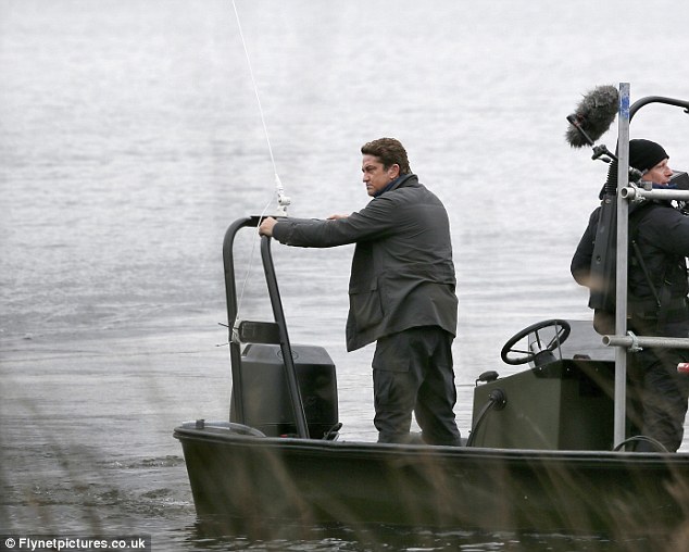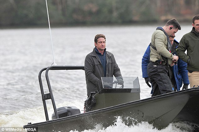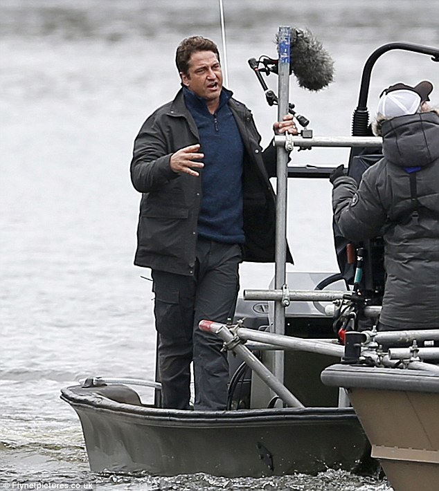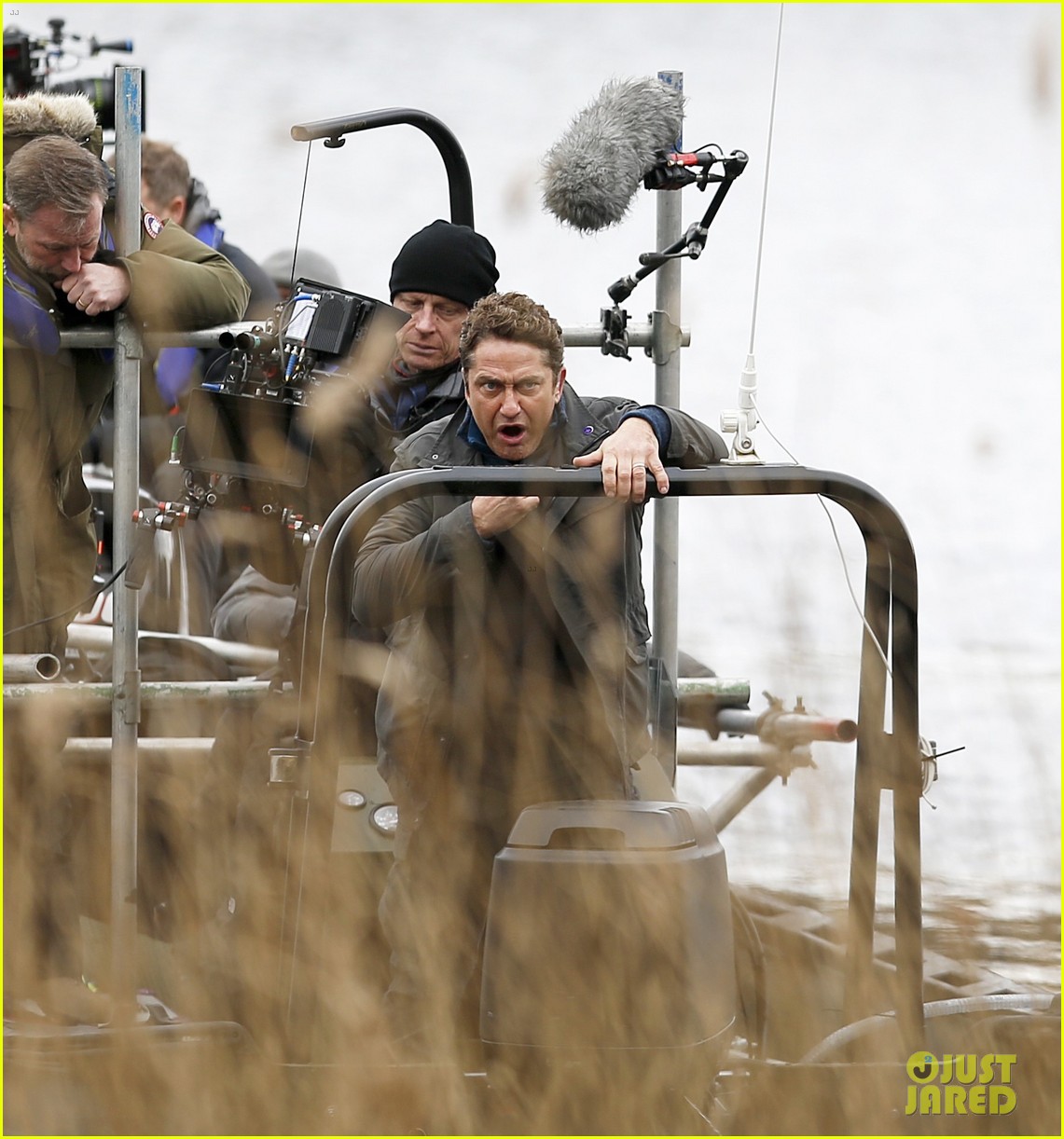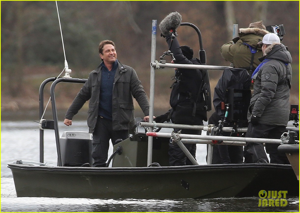 Gerard Butler Films 'Angel Has Fallen' on a Lake in London