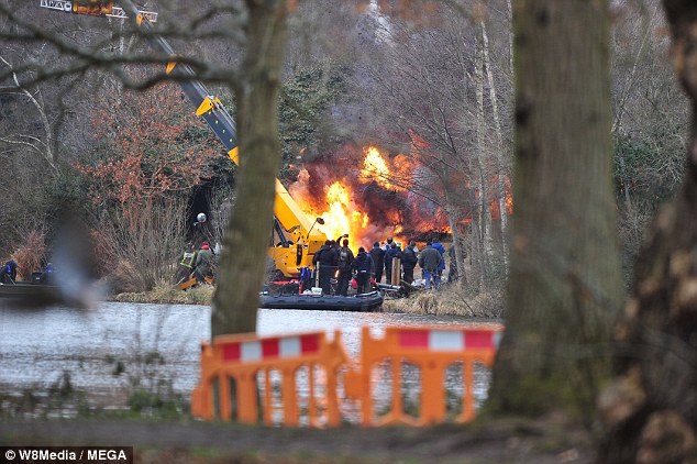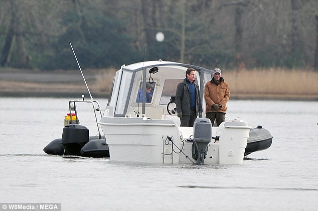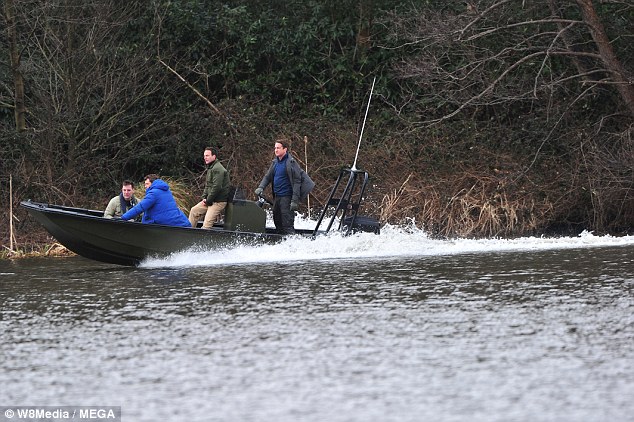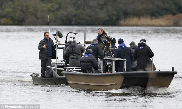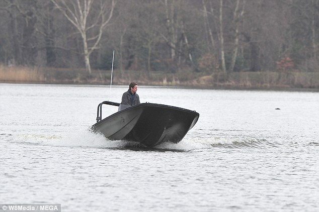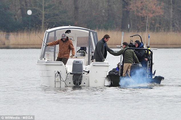 Scottish Actor Gerard Butler film scenes on a lake for the third in his series of blockbuster movies 'Angel Has Fallen' in West London, UK.