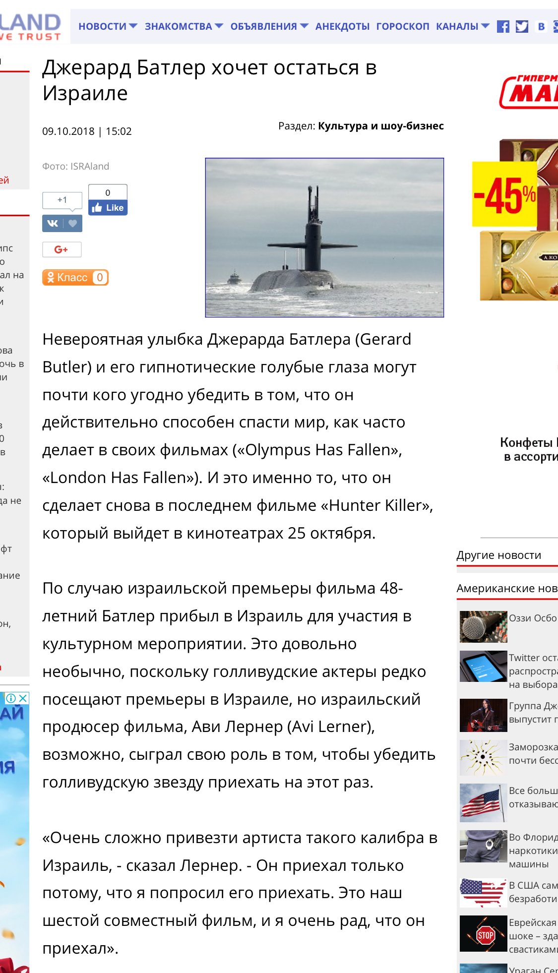 Re: СМИ о Джерарде Батлере Том 6