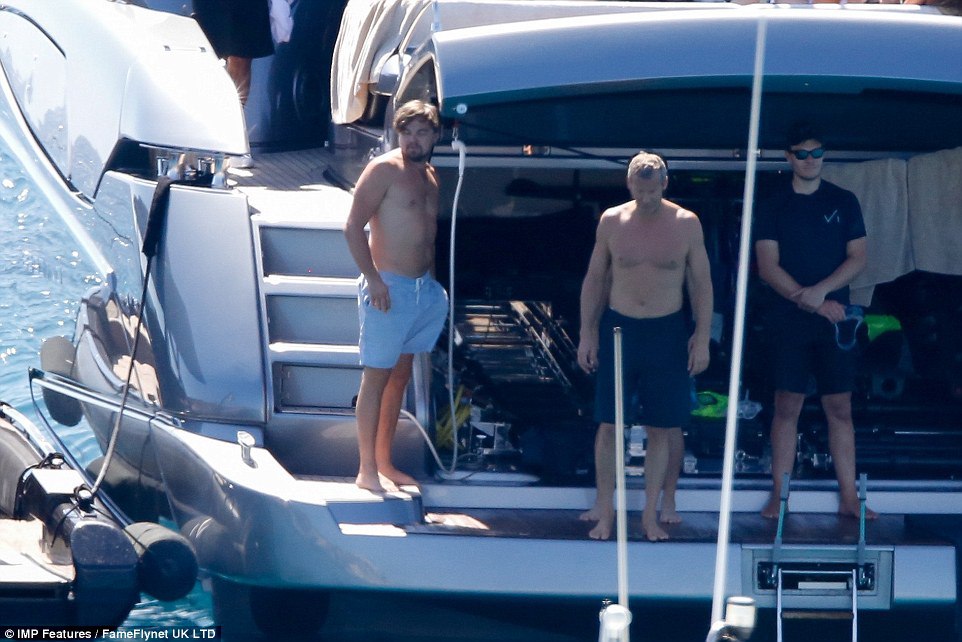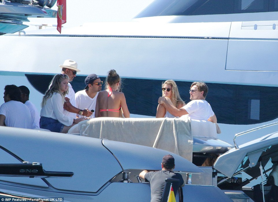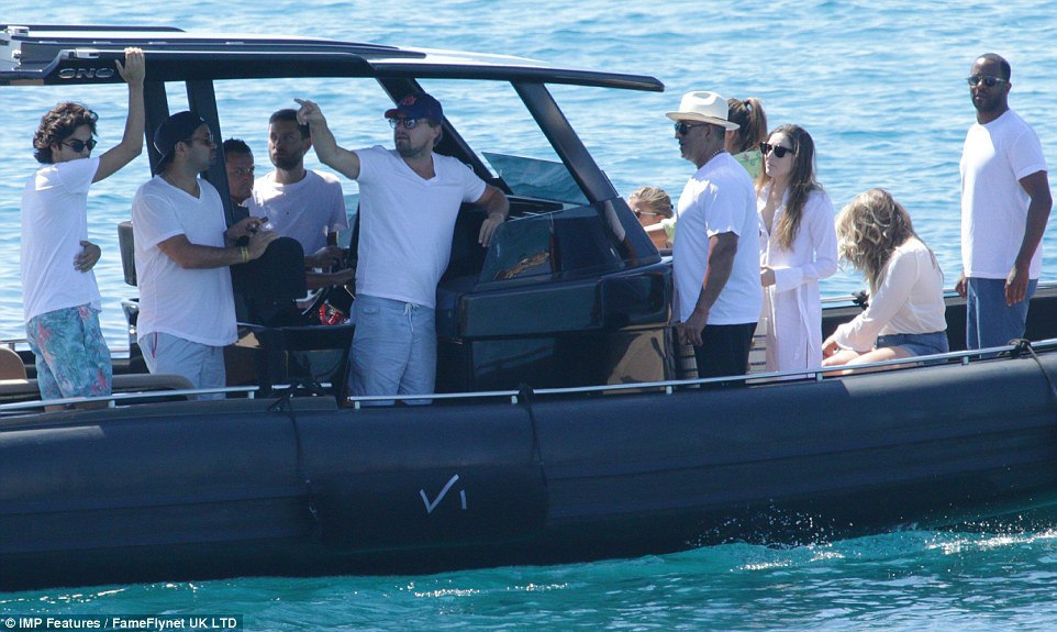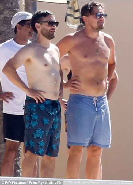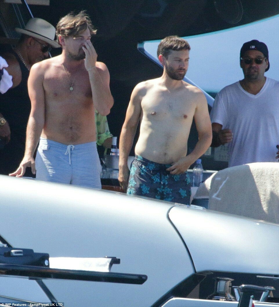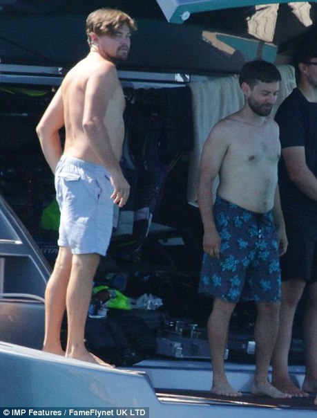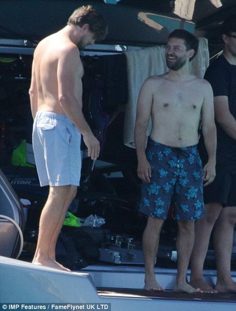 Лео на отдыхе с друзьями (Тоби Магуайером и др.) и своей девушкой Ниной Агдал (24 июля, Ибица)