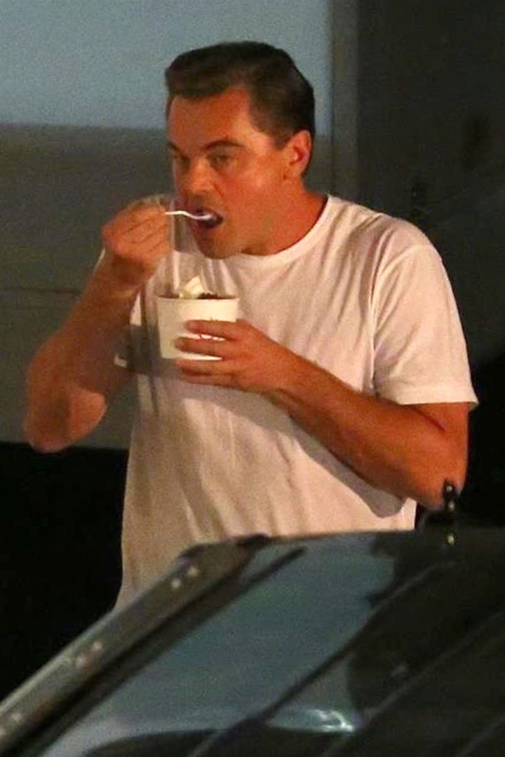 После съемок 26 Лео кушает мороженко, ожидая приезда отца с мачехой и сводной племянницей Норманди.