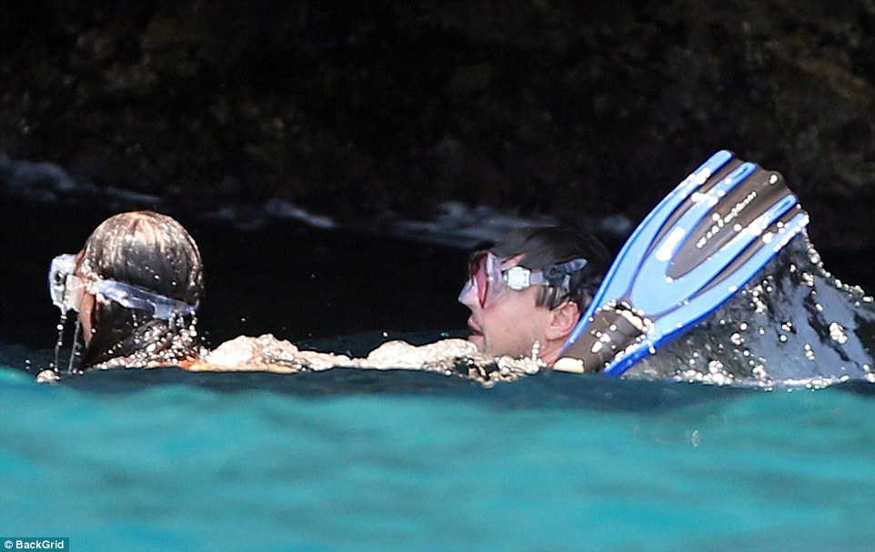 Лео заботливо поправляет ласты на ноге любимой)