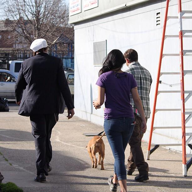 Черный бодигард с белой косыночке, хромающий Том, собачья няня и Касся - самый красивый и нормальный участник этой странной группы товарищей