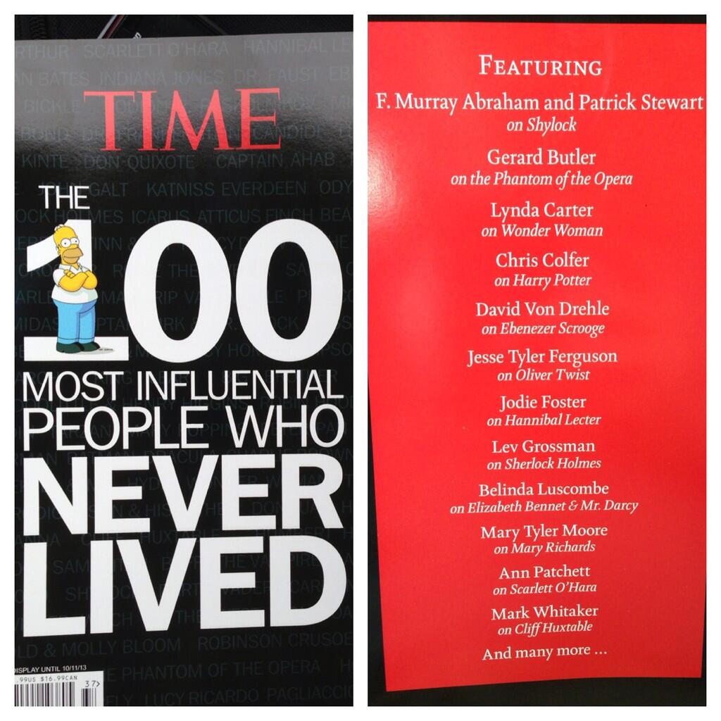 17 сентября 2013 г. выйдет выпуск журнала TIME под названием "100 самых влиятельных людей мира - из тех, кто никогда не существовал". Во второй строчке - Призрак оперы в исполнении Джерарда Батлера.