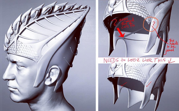Rhino screenshot of the helmet worn by #set from #godsofegypt played by #gerardbutler Designed by @lizpalmer Built by @tucothekidramirez #costumeillustration #stratasys #alexproyas #grownparts #costumeconcept #3dprinting #rhino