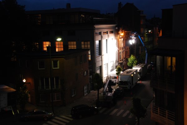 Straat wordt een paar dagen op zijn kop gezet voor opnames Le Fidèle van Michael Roskam met Matthias Schoenaerts.