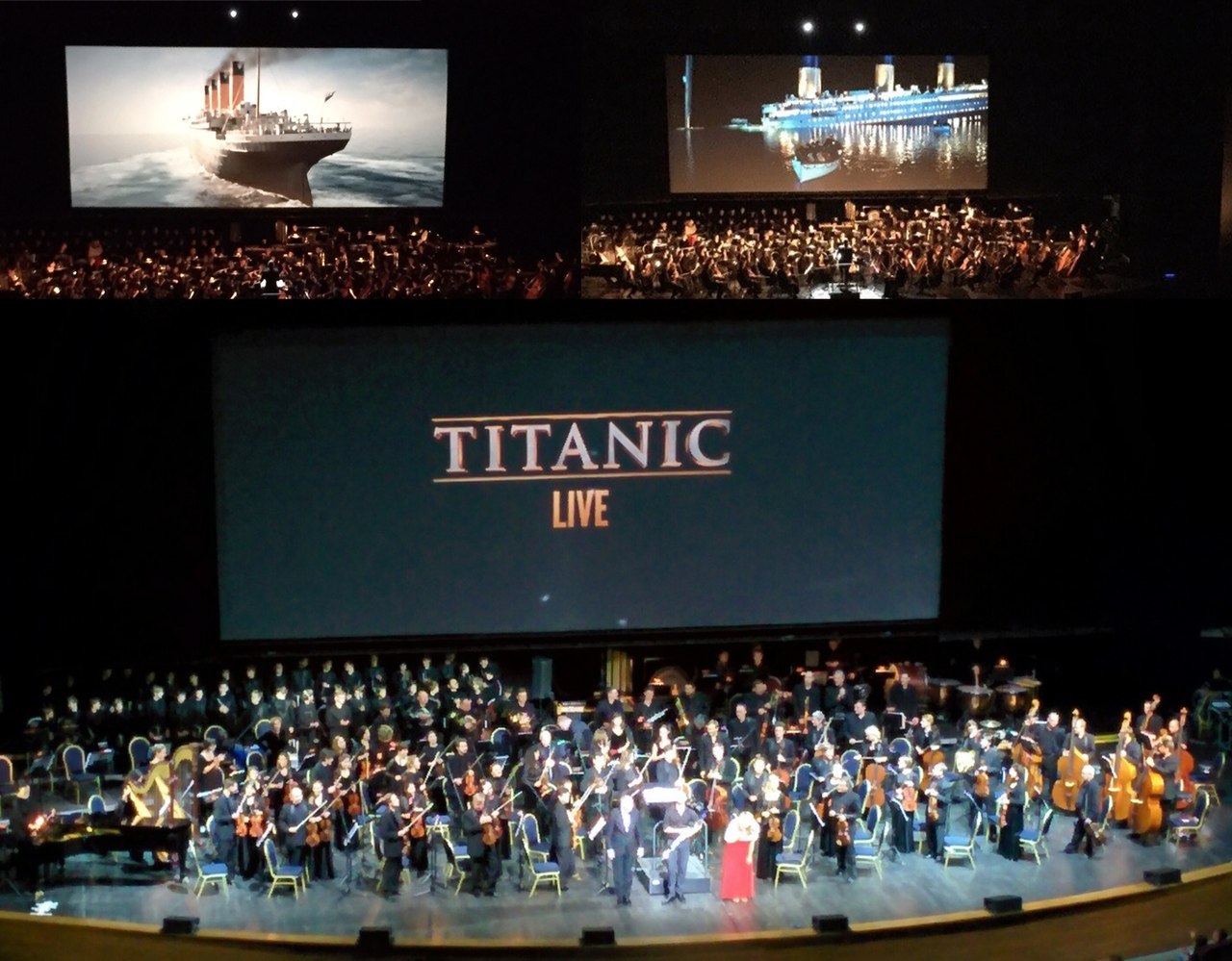 На огромном экране в течение 3х часов транслировали фильм Джеймса Кэмерона "Титаник", а бессмертную музыку Джеймса Хорнера исполнял настоящий оркестр. Сотни музыкантов, кельтские инструменты и большой хор сопрано в реальном времени исполняли оскароносные композиции Джеймса Хорнера, которые синхронизировались с видеодорожкой под управлением именитого дирижера Ши-Хун Янга.