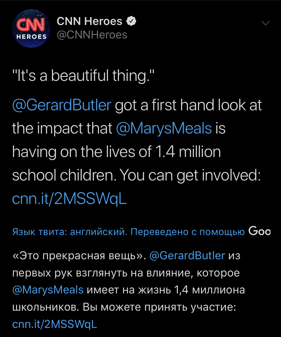 вы официально приглашены присоединиться к нам для специального и эксклюзивного просмотра нашего нового фильма "Любовь достигает всего" с голливудским актером Джерардом Батлером в главной роли! Зарегистрируйтесь на эту эксклюзивную онлайн премьеру по адресу https://www.marysmeals.ca/lovereacheseverywhere
