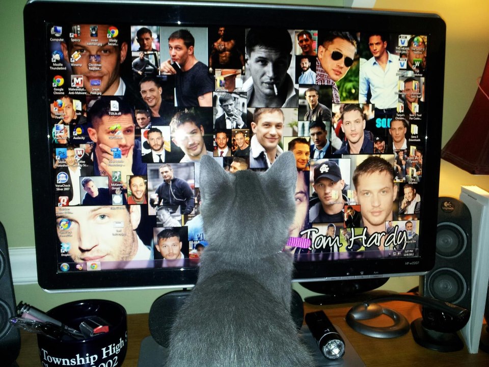 Точно так же сидят возле ноута мои коты - Шарфик и Груша. И на дисплее у меня похожая ситуация....