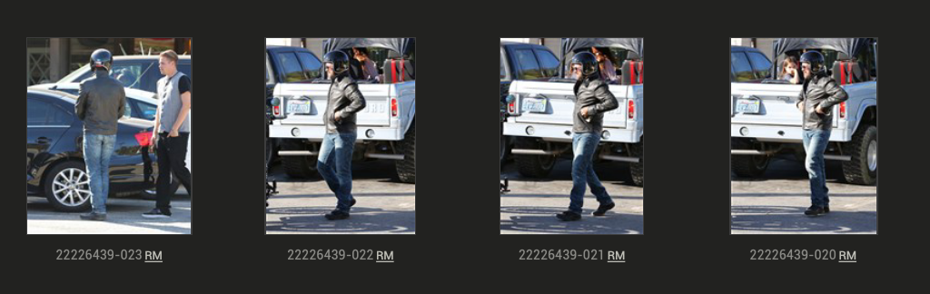 Она там не только сидит, а ещё и ходит. Я о том, что он сам по себе на мотоцикле, а они сами по себе.
