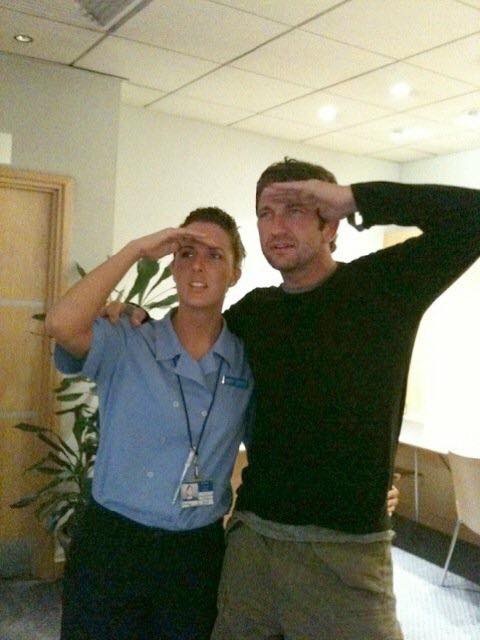 I got my pictures with @GerardButler today and I put them in frames and now they are hanging over my couch