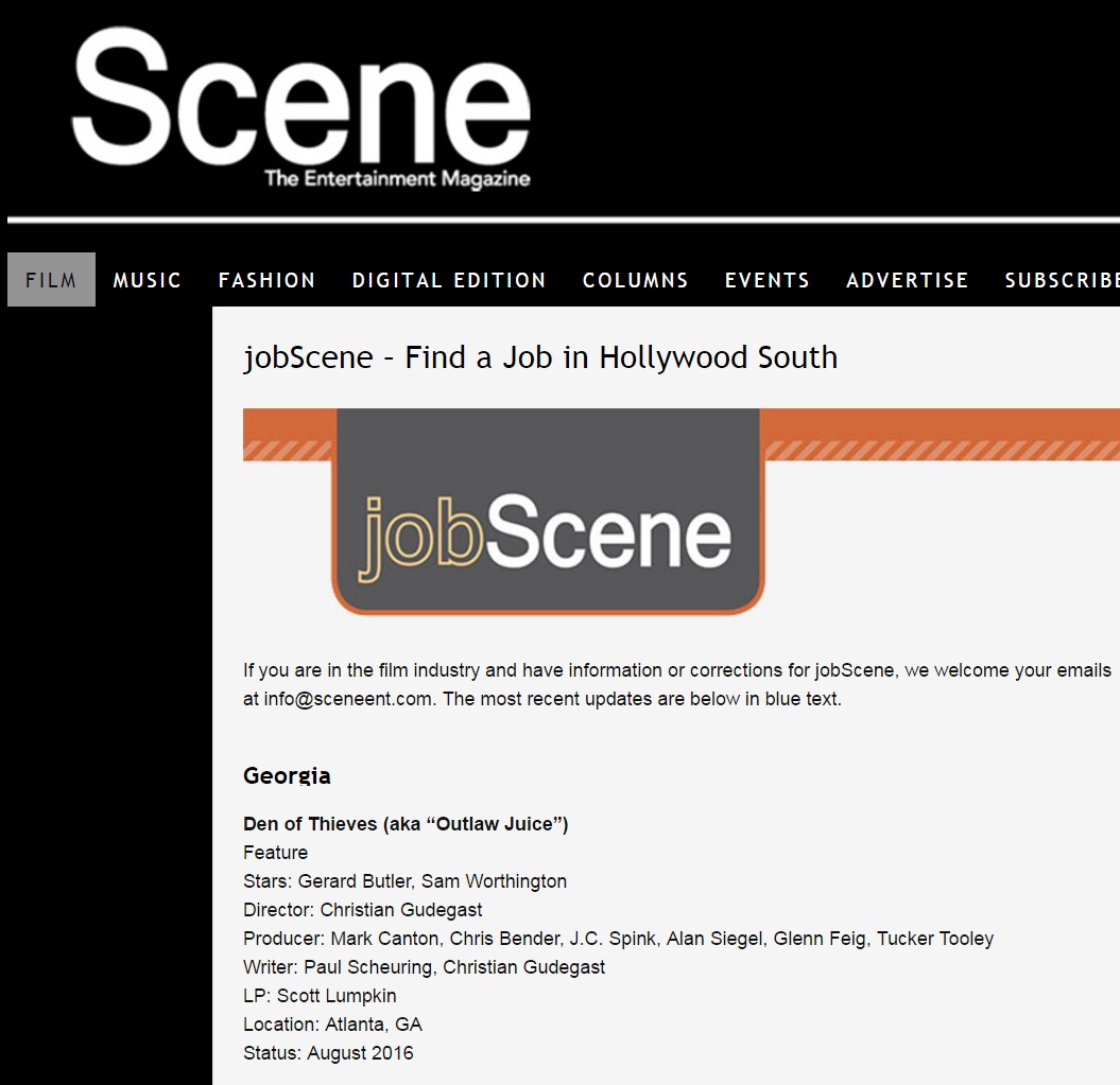 Thank you for visiting the Georgia Film, Music & Digital Entertainment Help Wanted Hotline page. Find up-to-date job information for film and television projects happening throughout the state. Please submit your resume to the production companies directly at the link provided, and put the department/job title you are applying for in the subject line of the email. Updated November 21, 2016.